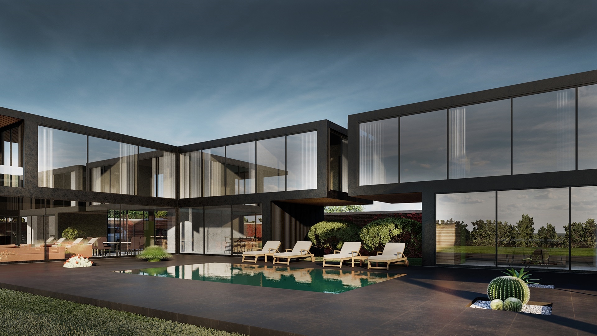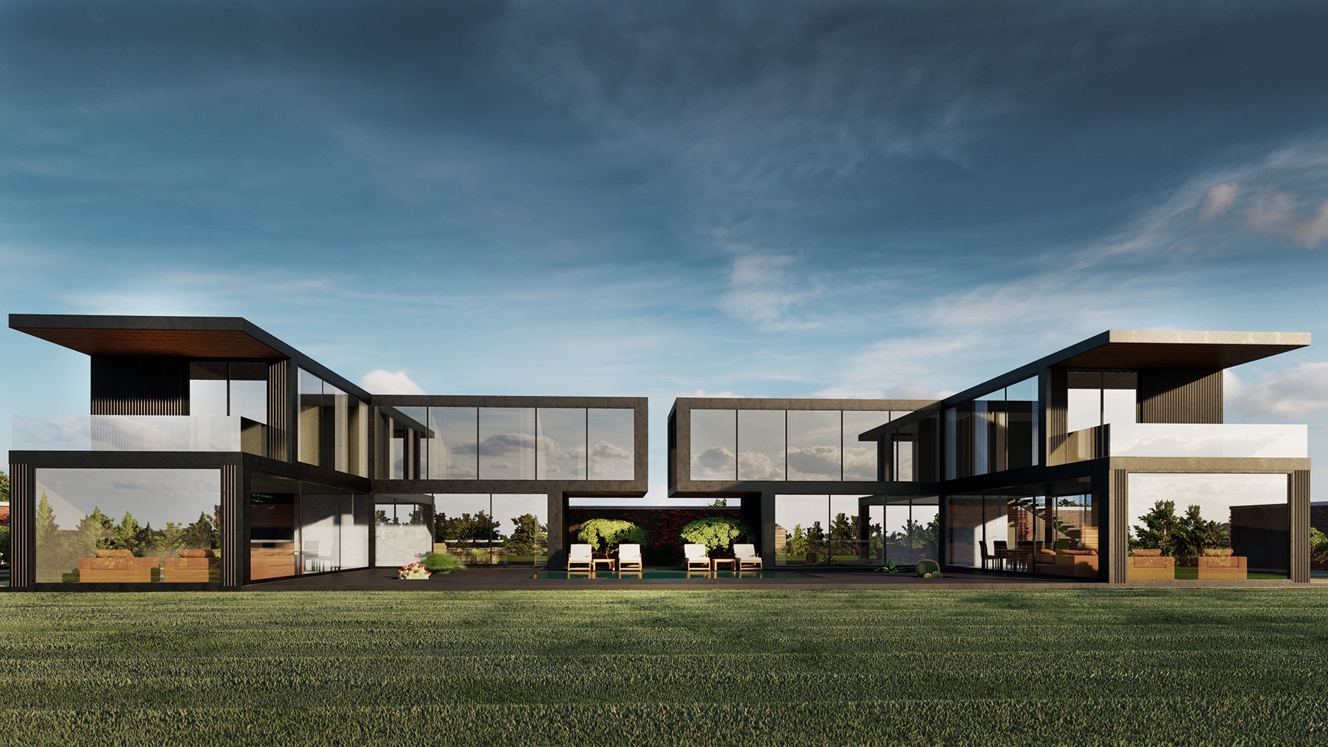 Çanakkale’ de sahil kasabasında 1000m2 alan üzerine çözümlenmiş çelik konstrüksiyonlu villa. Düz hatları ile optimum kullanım rahatlığı yaşatan ve boydan camları ile panoramik manzara sunan modern minimal hatlara sahip bir villa.