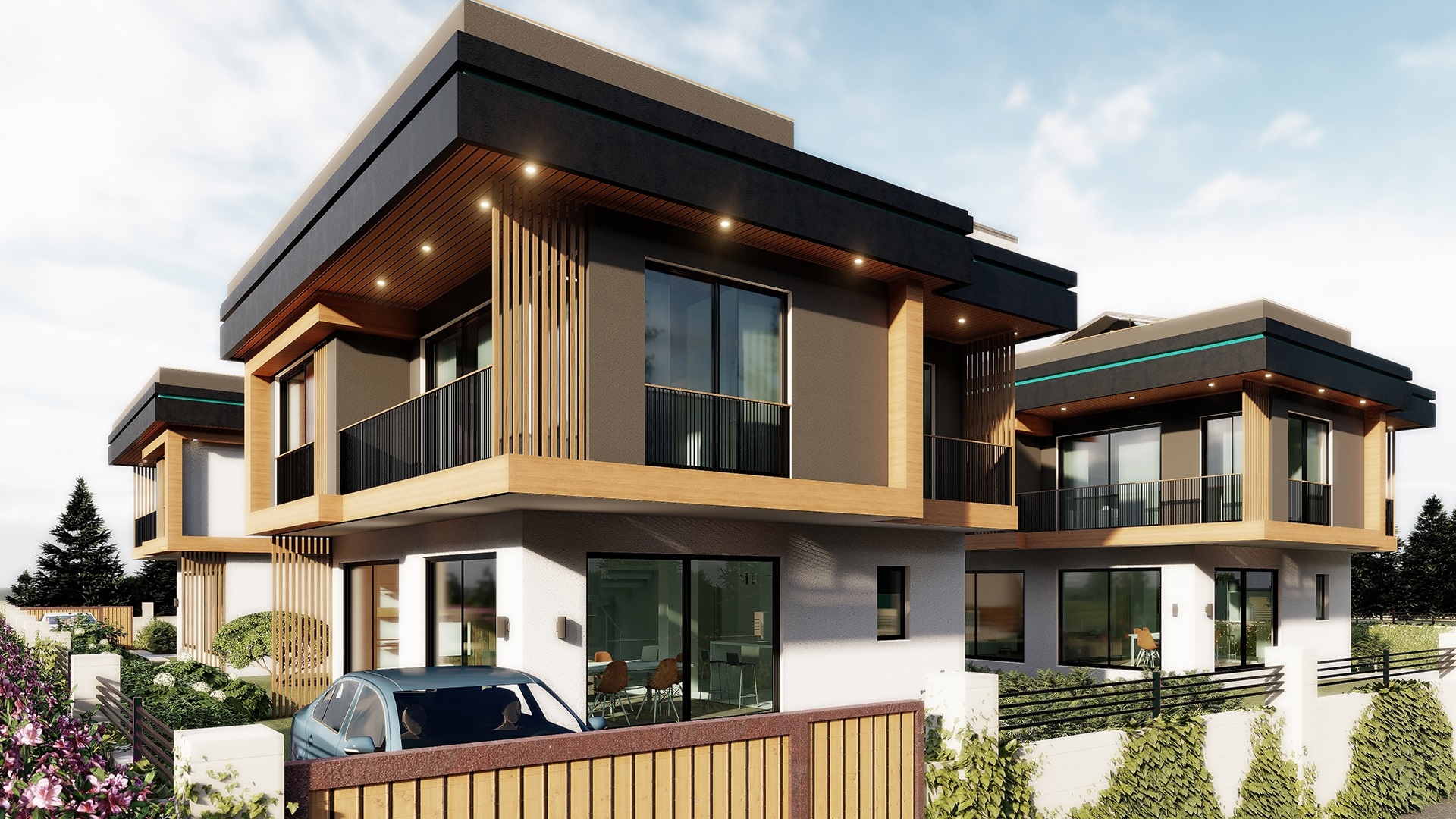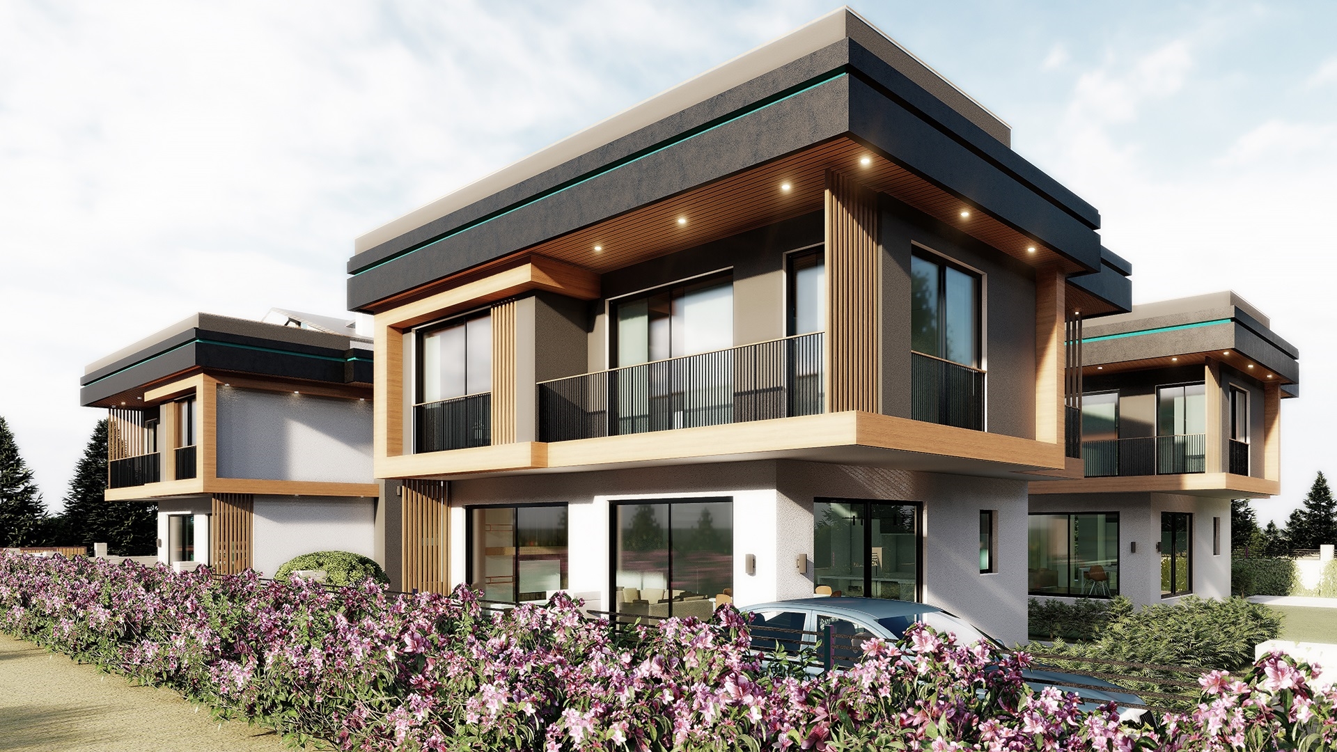 Selimpaşa’ da Güvenyap Garden Villaları. 900m2 arsa üzerine tasarlanan dört adet villa. Modern çizgileriyle alanların optimal kullanıldığı 240m2 lik 4+1 villa.