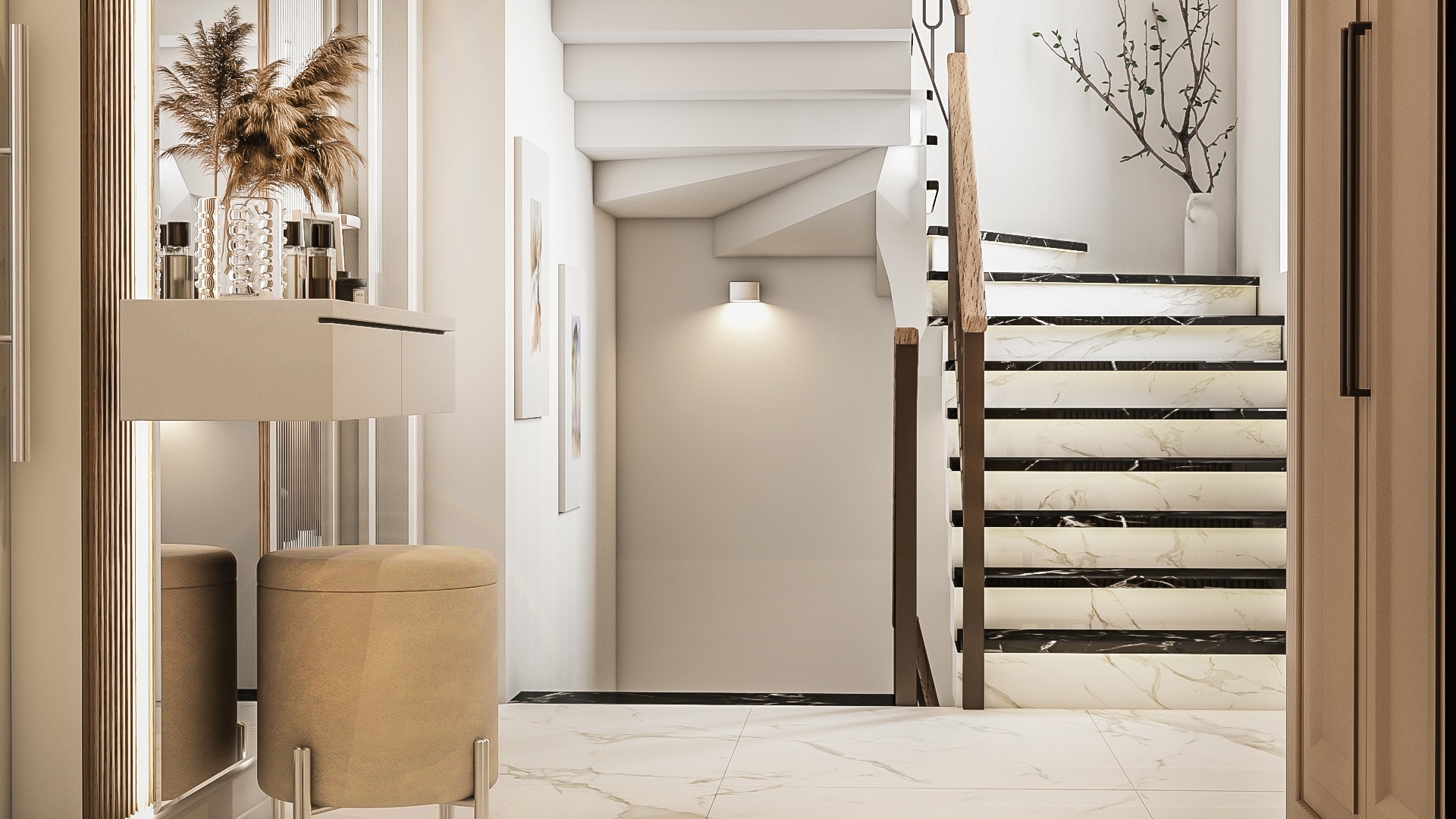 Villa İnci. 270m2 kullanım alanıyla ferah kullanım ve işlevselliğin yanı sıra tasarımda dokuyu, rengi ve ışığı elegan bir yaşam sunmak için özenle kullandık.